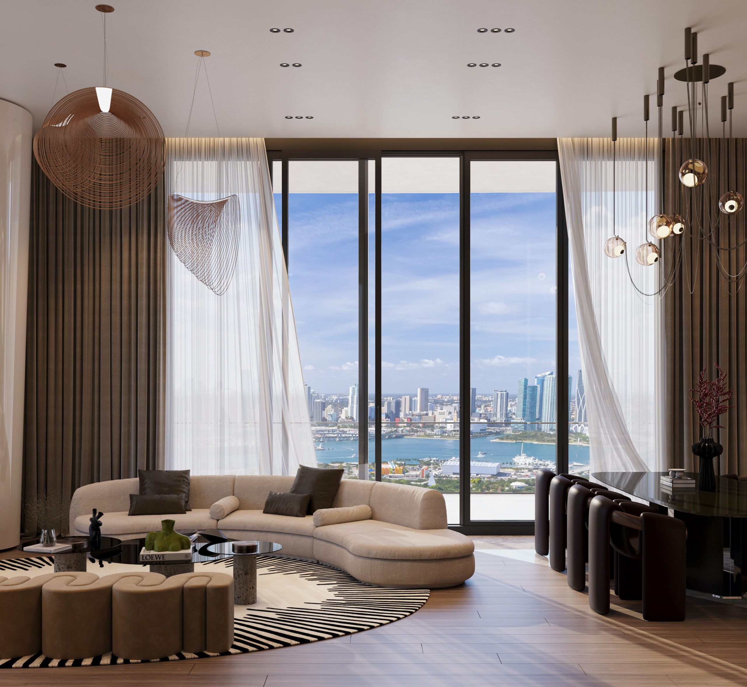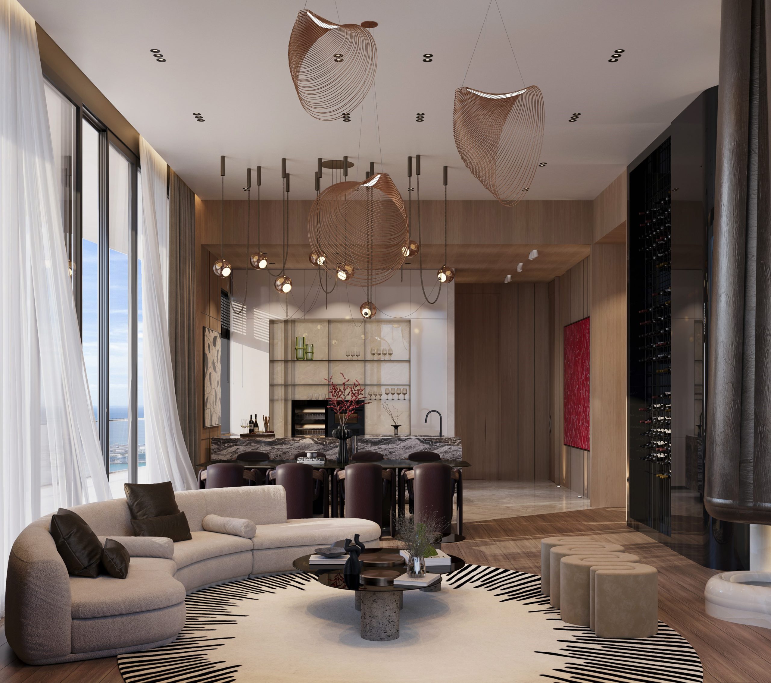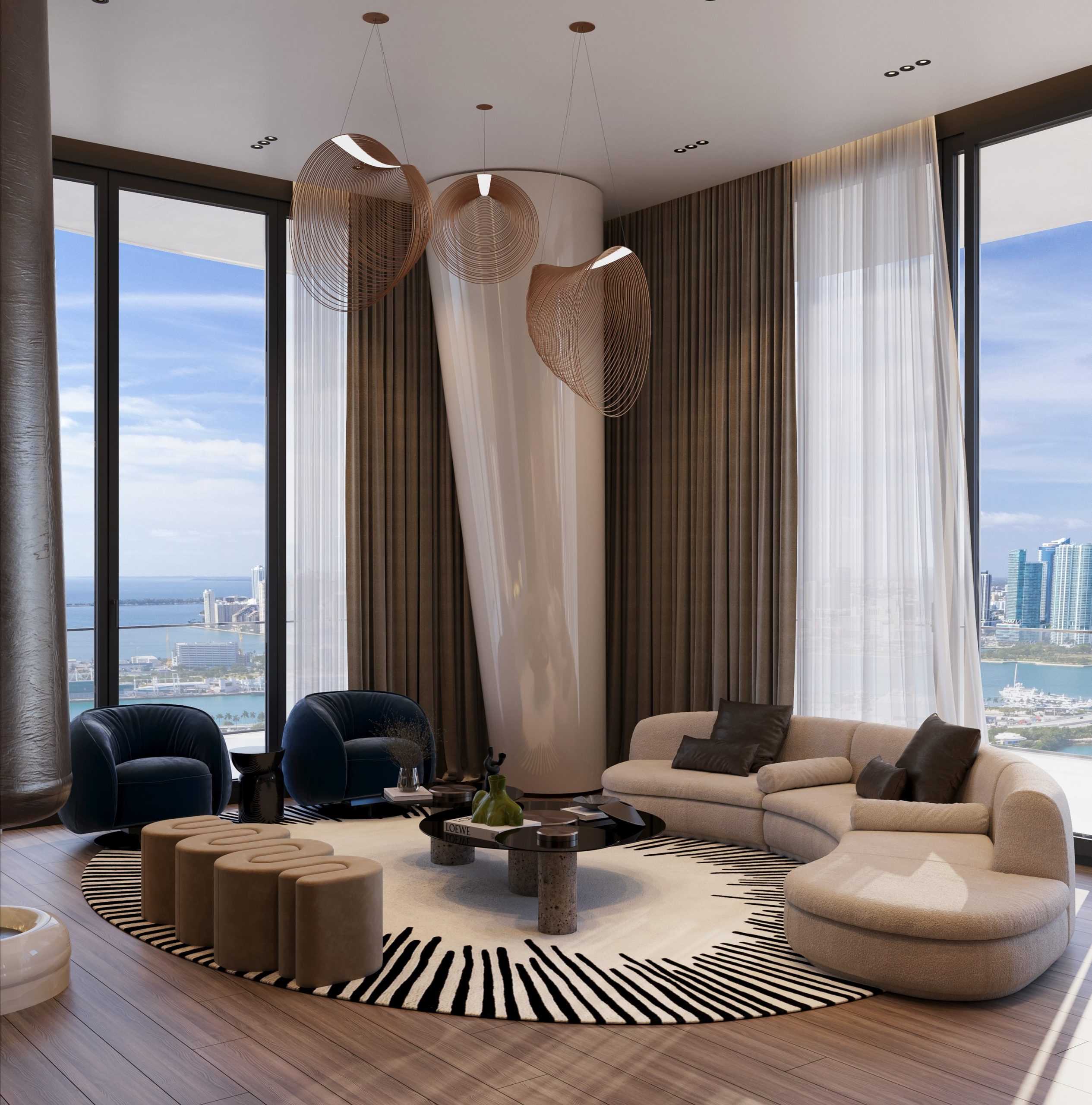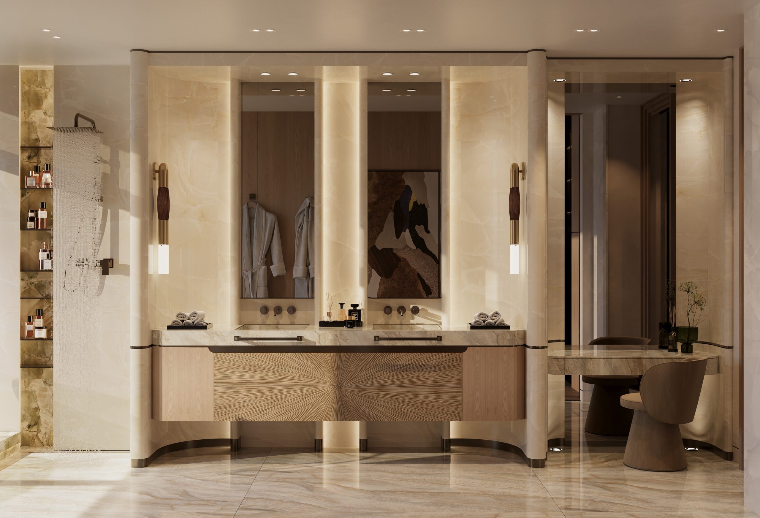This custom-crafted residence at Pagani Residence Miami reflects Ool Studio’s signature approach to contemporary luxury, where architectural precision is balanced with sculptural form and elevated material expression. Designed as a seamless living experience, the interiors balance warmth, precision, and sensory richness through a carefully curated palette of natural stone, warm wood tones, and tactile finishes.